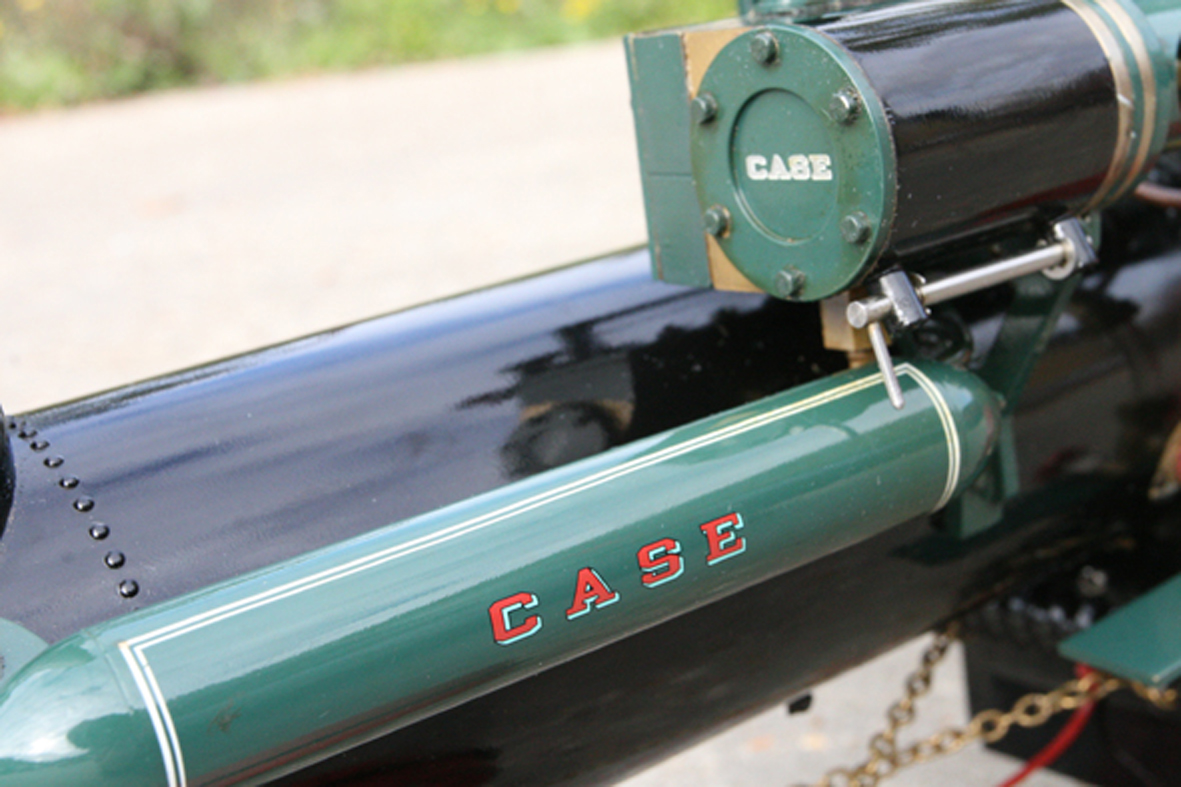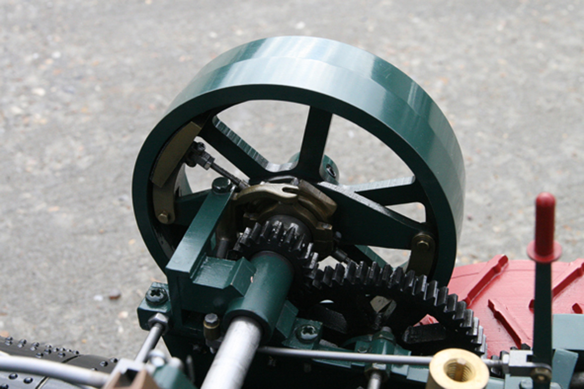 This model is based on the traction engines produced by the Case company in USA. These engines were built from the mid 1800 to the early 1900 and are typical of the style used by many American manufacturers. It has a single cylinder mounted on a cast frame, and a constant mesh gear drive with a clutch mechanism built into the flywheel. There is full spring suspension on the rear axle with the gears kept in alignment by a swing link system. The model is gas fired with twin flue burners, and superheater. It comes complete with the dome, feed water heater and governor as detailing.